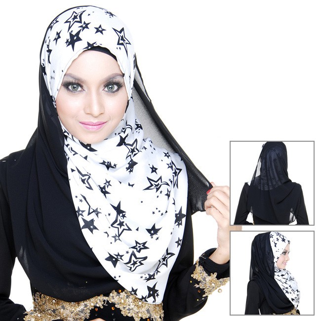 Tudung Shawl Panjang 3 Gaya Bintang Putih Hitam Shopee , Sumber : shopee.com.my